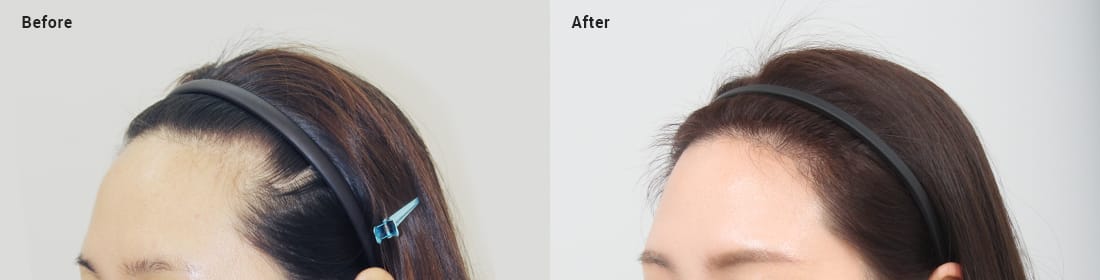 보통 여성 헤어 라인은 맨 앞에 솜털같은 잔털이, 두피 쪽으로 갈수록 굵은 모발이 자리하고 있습니다.